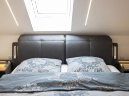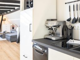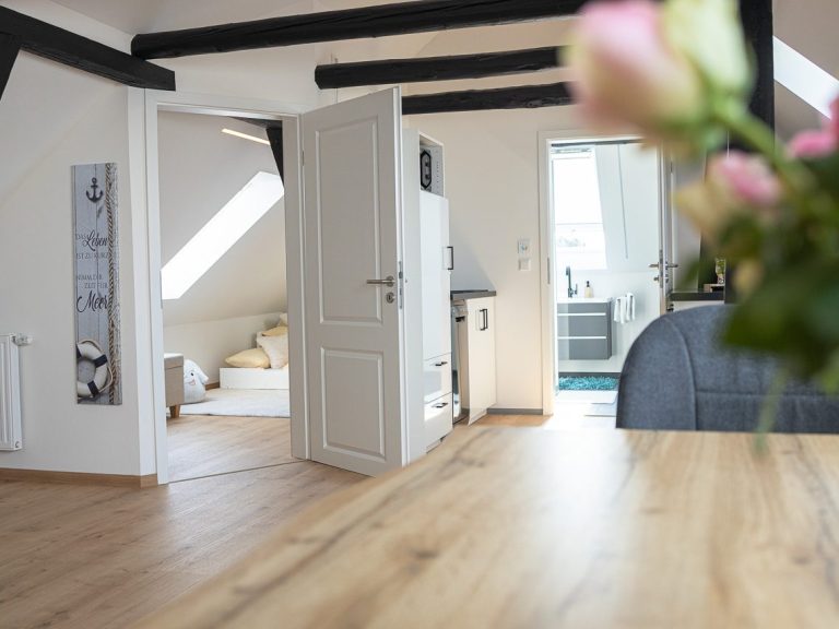 In unserer exklusiven Kapitänssuite erwarten Sie nicht nur zwei Schlafzimmer, sondern auch ein großzügiger Wohnschlafraum mit einem einladenden Esstisch. Das komfortable Badezimmer mit Dusche sowie die moderne Küchenzeile mit praktischer Spülmaschine runden das Wohlfühlambiente ab.